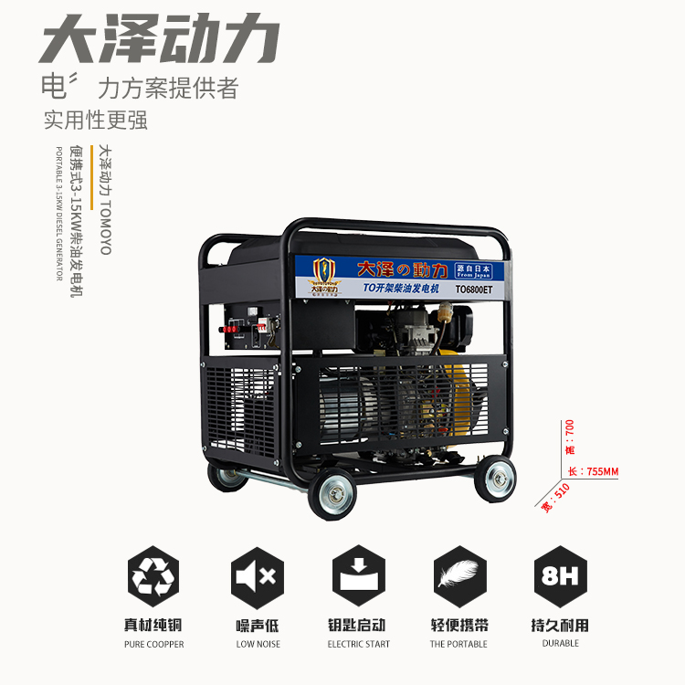 大泽动力主营柴油发电机,汽油发电机,发电电焊机,采用大泽原装发电机,功率充足,使用寿命长,提供售前售后服务,免费提供产品选型方案及项目预选方案